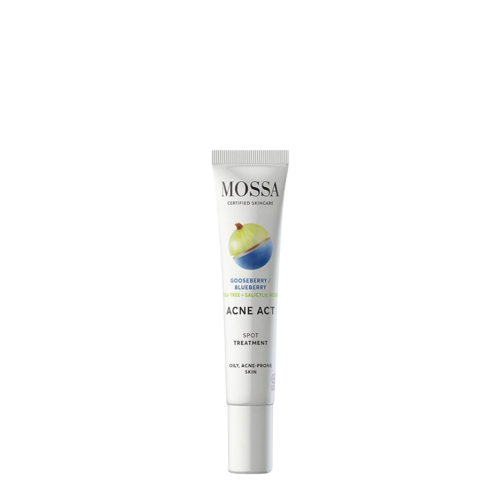 OBS! Kort datum: 04.2025. Nu 20% rabatt. Acne Act Spot Treatment från Mossa – ett kraftfullt koncentrat som hjälper till att lindra inflammation och rodnad i huden. Särskilt lämplig för aknebenägen hud.
