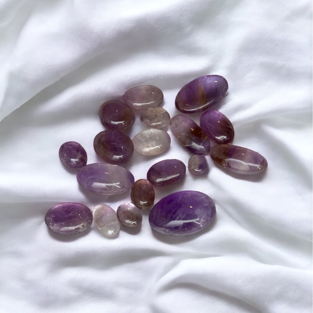Ametist är en riktigt stark, beskyddande och andlig sten med helande energier. Det är en av de mest spirituella stenarna och den är mycket användbar vid meditation och ritualer. Den är starkt läkande och renande. ”Cuddle Stone” betyder att stenarna är runda, lena och extra härliga att hålla i.